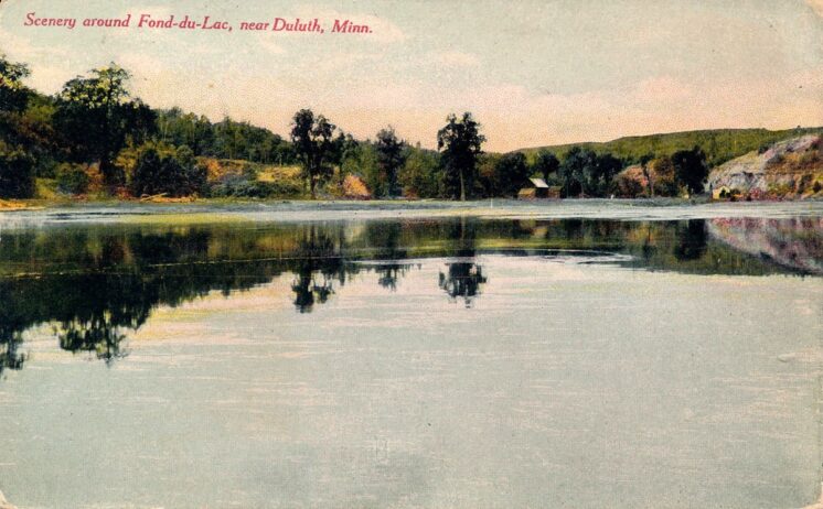 This postcard shows scenes from the Duluth neighborhood of Fond du Lac, along the St. Louis River.