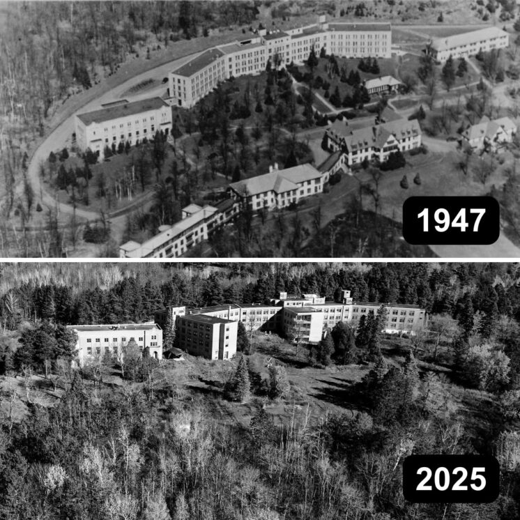 The above aerial photo comparison shows changes spanning roughly 80 years at the 40-acre site of the Nopeming Sanatorium in Midway Township, just outside Duluth.
