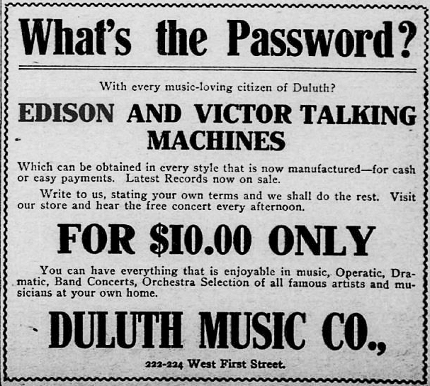While putting together the Duluth Deep Dives, I often come across ads in the Minnesota Digital Newspaper Hub that I find amusing, surprising, well-designed or a direct reflection of the historical period. When I see one of these ads, I make a clip and put it aside in a folder. In what seems likely to be a reoccurring topic, this Duluth Deep Dive goes into those files to present 20 somewhat remarkable ads.