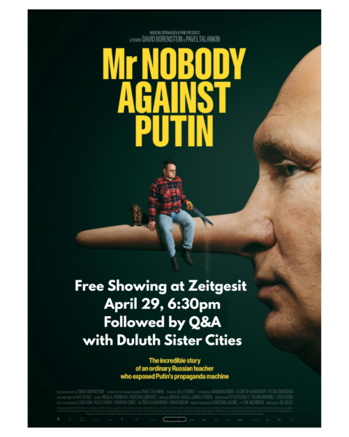 Duluth Sister Cities offers this free screening of the Oscar award-winning film Mr. Nobody Against Putin. Russian teacher, Pavel "Pasha" Talankin, documents the systematic indoctrination of his students after Russia declared war with Ukraine. This film explores the complexities of modern geopolitics through a deeply human lens. Following the screening, DSCI board member JP Gresh—who has served as a military attaché in both Ukraine and Russia—will lead a discussion on cultural dynamics in Russia and the long-term impact of Russia’s…